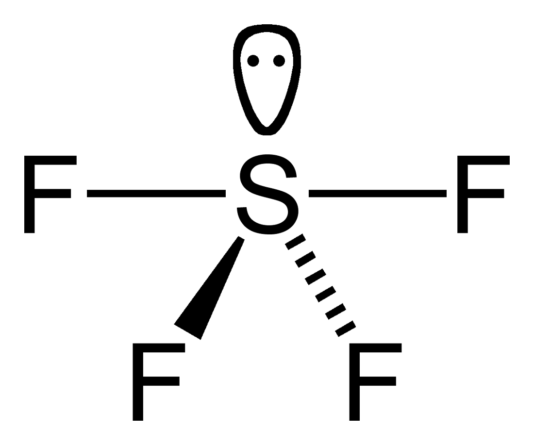 四氟化硫由1个硫原子和4个氟原子通过sigma键连接。硫原子由1个孤对组成。