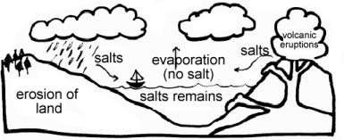 河流和湖泊不咸,但海洋是咸的。这是因为水只通过蒸发从海洋中逸出,留下盐和矿物质。